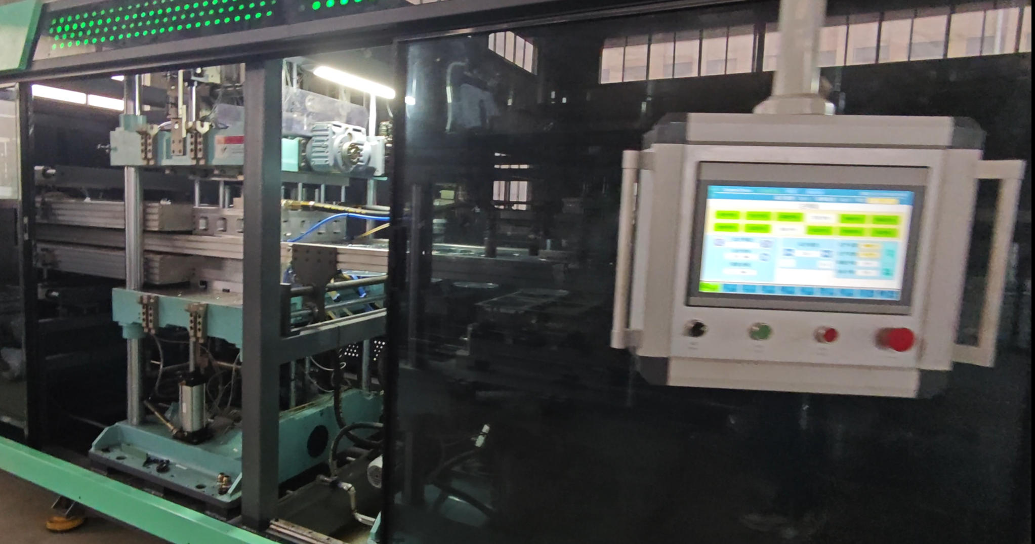 The five-point structural connecting rod ensures that even with large molds, the movement is stable and precise. Our equipment also features a 90-set parameter save function, making it easy to manage large-scale production runs from our base in Wenzhou’s Binhai New Area.