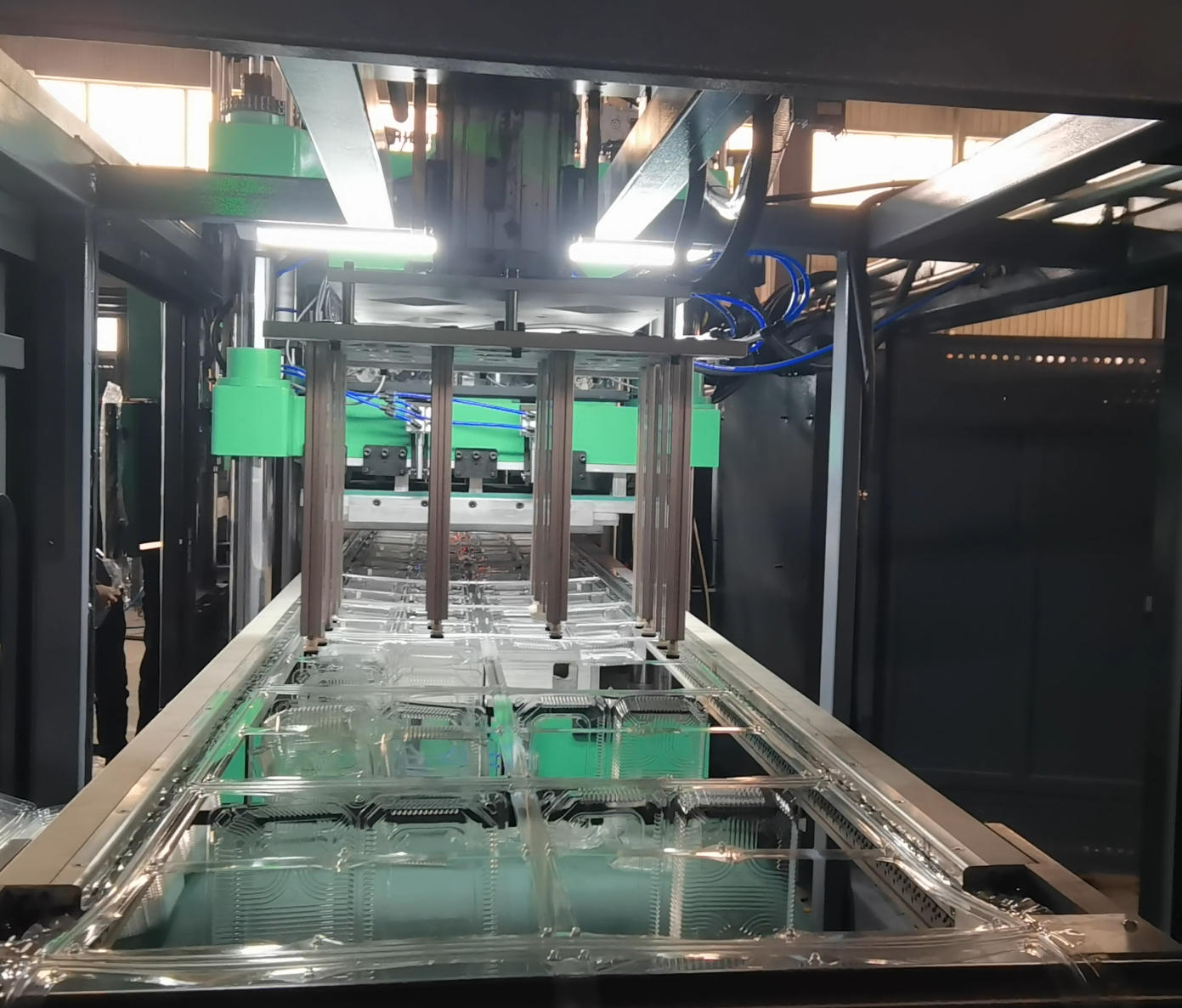 This integration is crucial for complex products like ventilated fruit containers and connected-cover egg trays. By using servo motors for the cutting and punching stations, we ensure high precision and low maintenance.