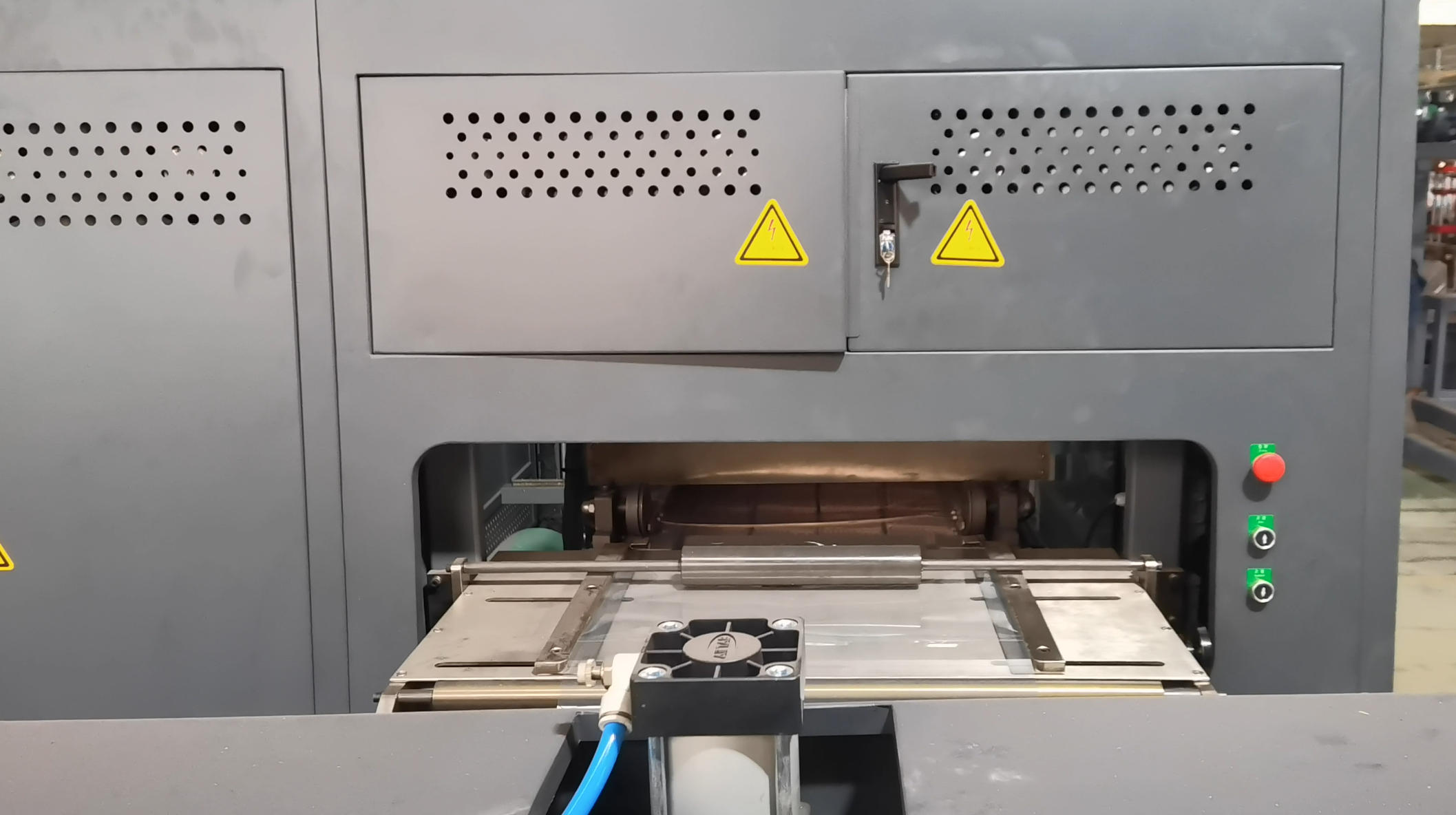 This system, controlled by a high-end PLC, features a remote connection function that allows for technical support and data monitoring anywhere in the world. Whether you are forming PVC lids or HIPS trays, the machine can store $90$ sets of operating data for immediate recall.